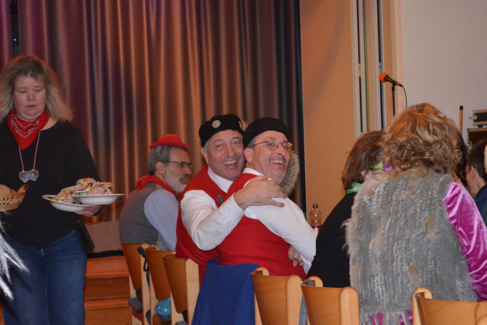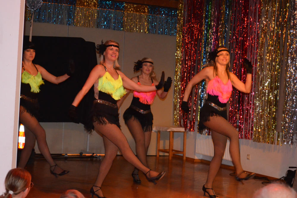 Musikalisch wurde es laut und mitreißend, als der Spielmannszug den Saal zum Schunkeln brachte. Richard Frey bewies echtes Show-Talent, als er den Queen-Klassiker „We will rock you“ kurzerhand in einen Rap umdichtete. Für tänzerische Eleganz sorgten die TSV Showdancer Delight under der Federführung von Viktoria Derksen mit ihrem „Tanz in den Mai“, während die „kleinen Männer“ des Kirchengemeinderats (F. Digel, T. Beller, T. Funk und J. Gulde) in Uniformen der Bürgerwache für Begeisterungsstürme sorgten.