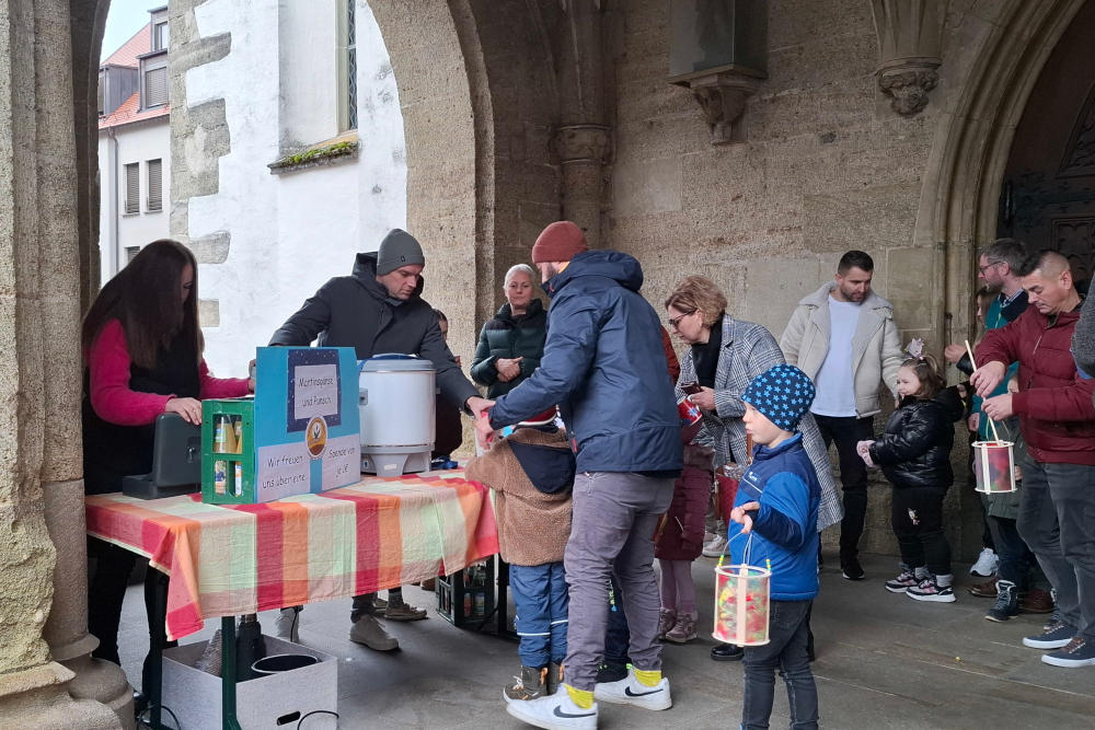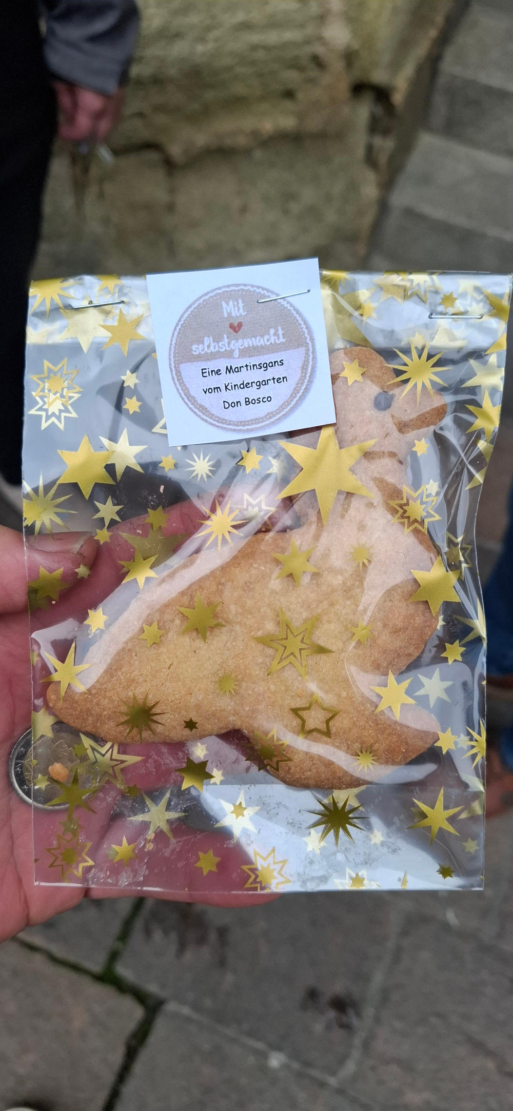 Im Anschluss an den Familiengottesdienst hatte der Elternbeirat einen Stand aufgebaut mit selbstgemachten Martinsgänsen und heißem Puntsch. Die Aktion lud die Gemeindemitglieder zum Verweilen und Austausch ein und diente gleichzeitig der Unterstützung des Kindergartens.