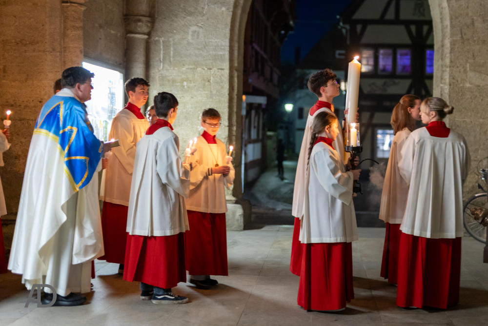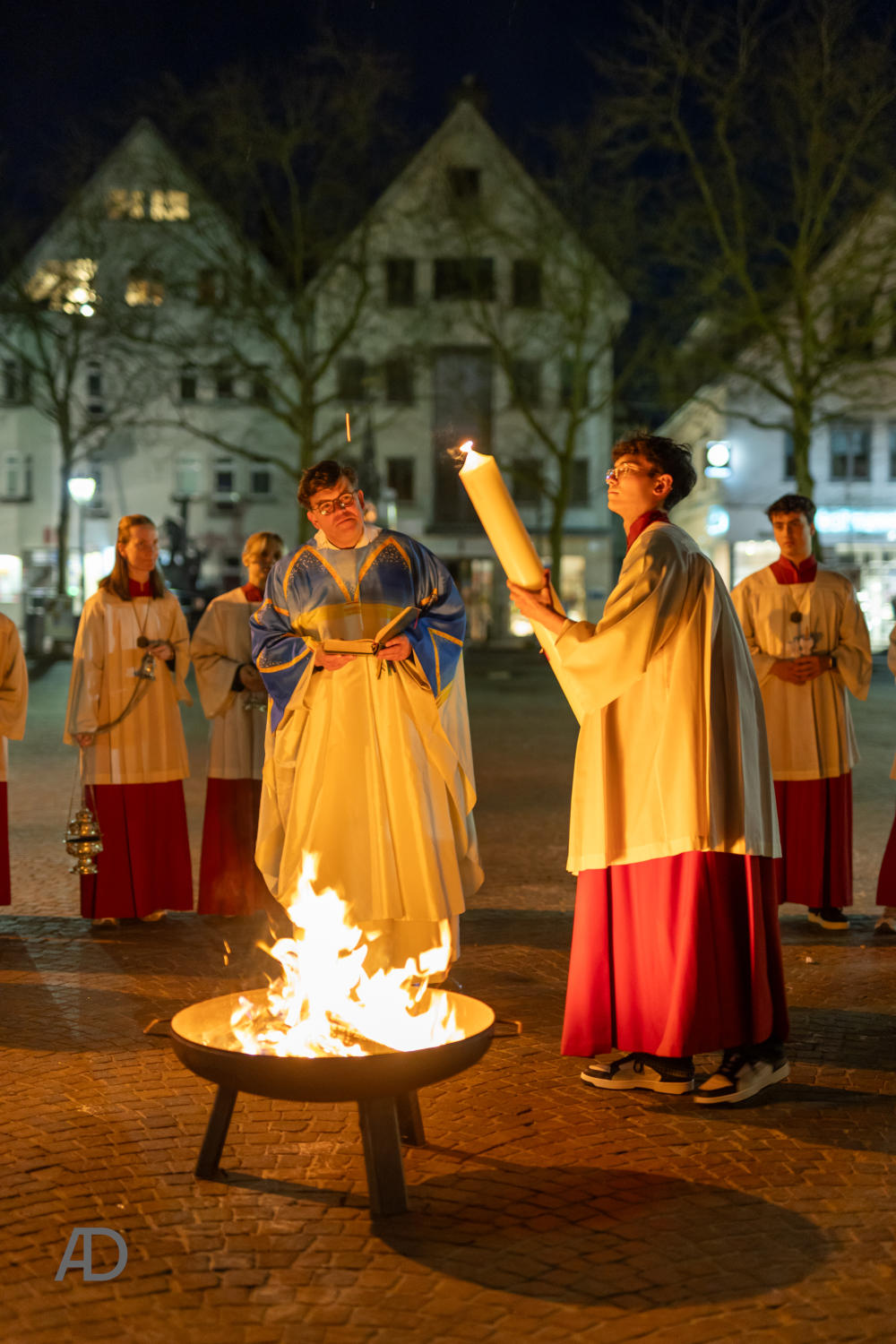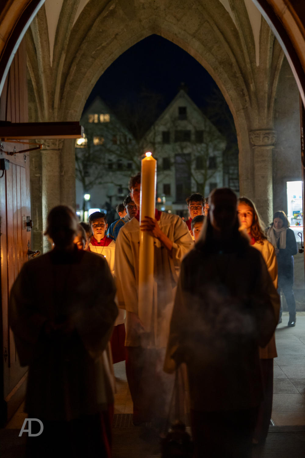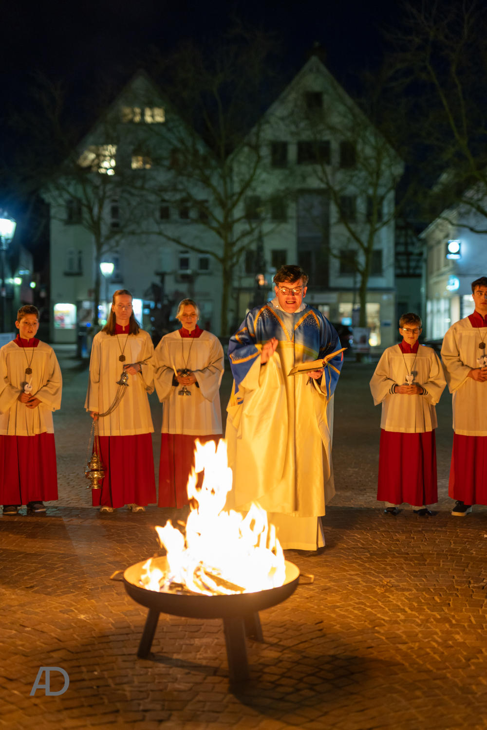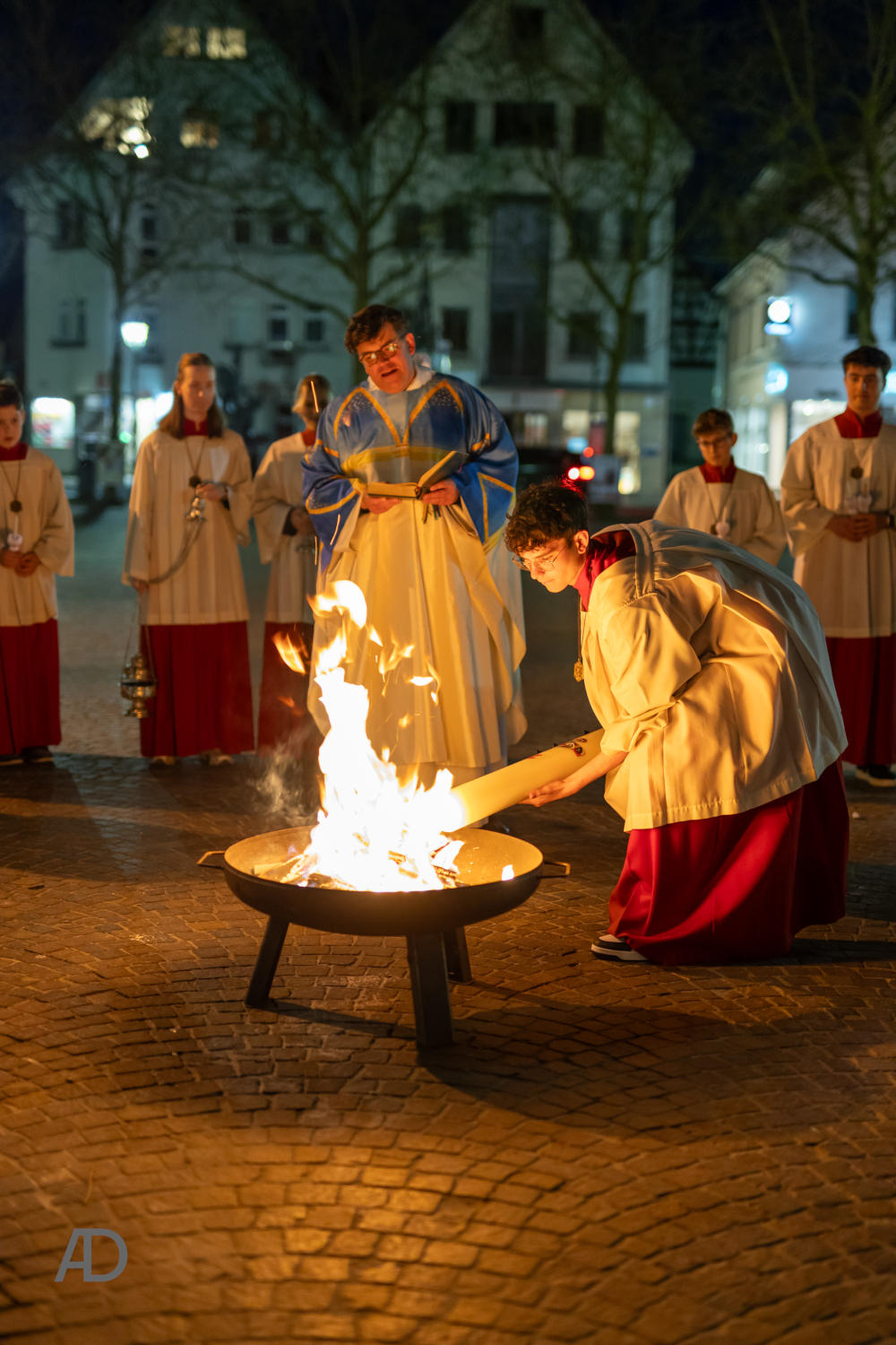 Hier finden Sie einige Eindrücke der Feier der Heiligen Osternacht mit dem Osterfeuer auf dem Marktplatz und des Feierlichen Osterhochamts in der Stadtpfarrkirche Bad Saulgau am Ostersonntag.