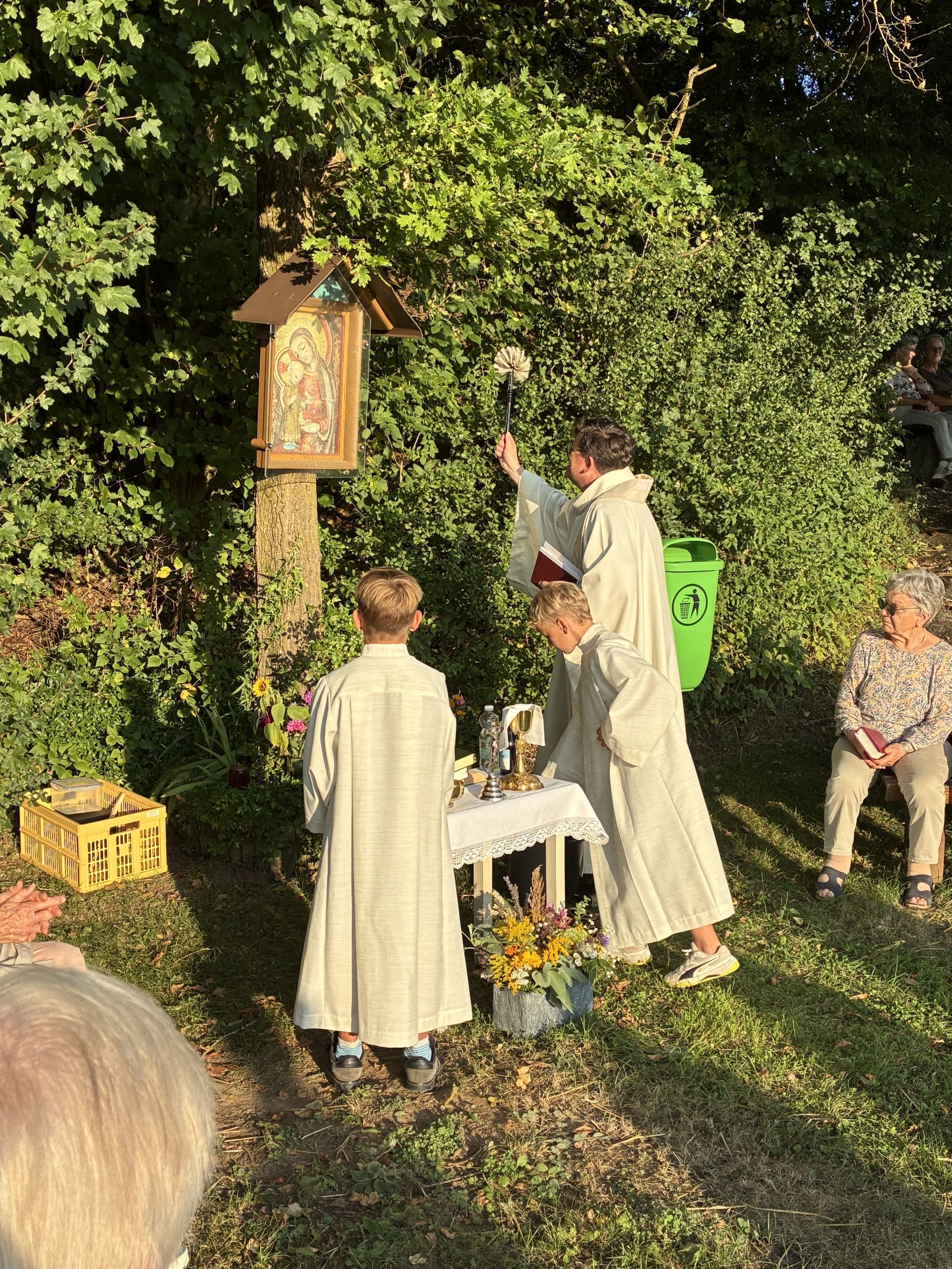Am Sonntag zum Hochfest Mariä Himmelfahrt feierte die Pfarrgemeinde Bolstern den Gottesdienst mit Kräuterweihe am Sießener Bildstöckle. Zu diesem Anlass wurde das Sießener Bildstöcke nach der Restauration von Herrn Dekan Müller gesegnet.